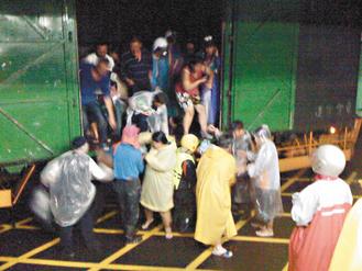 昨晚在距離南方澳十四公里處,近20輛大巴、中巴、貨車全困在一塊“取暖”,等待救援。