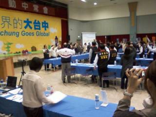 馬英九表示,這是國民黨創(chuàng)黨一百一十六年來,首次將中常會移師到臺中縣舉行,國民黨臺中市長參選人胡志強以及市議員參選人都到場。
