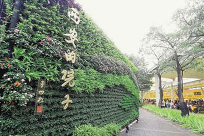 此外,“人文之墻”打造唐朝長(zhǎng)安的知名景點(diǎn)“曲江池”,池里種滿芙蓉,池畔墻上鐫刻宋陸游之作“多情誰(shuí)似南山月,特地暮云開。灞橋煙柳,曲江池館,應(yīng)待人來(lái)!笔窃(shī)人興嘆,更是西安在花博的迎賓辭!吧鷳B(tài)之墻”則用大片花草藤木環(huán)繞庭園,象征現(xiàn)代生態(tài)文明及綠色經(jīng)濟(jì)。