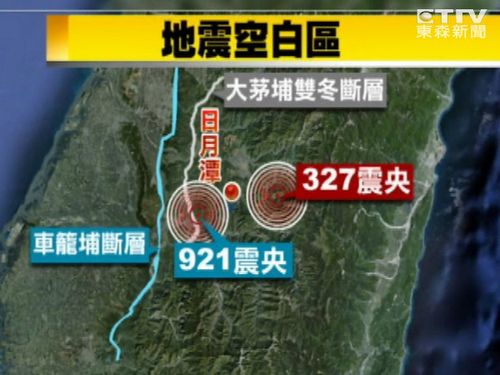 327地震、602地震兩次地震震中都位于921地震車籠埔斷層?xùn)|邊,這塊區(qū)域過去很少有地震紀(jì)錄,被稱為“日月潭地震空白區(qū)”,從過去的地震分布圖分析,日月潭東邊這區(qū)塊是幾乎是空白一片。臺灣“中央大學(xué)”地球科學(xué)院長王干盈在327地震后曾表示,“中央山脈很硬,卡住,所以921地震,你可以看到這個地方卡住,所以它才沖到這邊來。”
