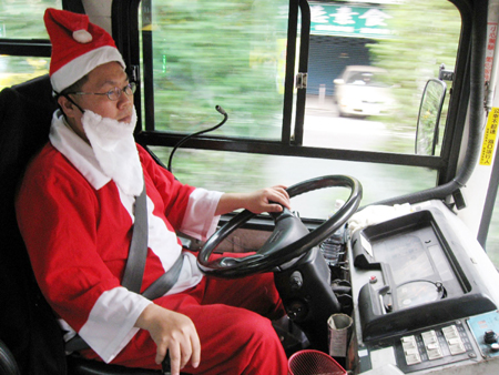 中新網(wǎng)12月20日電 隨著圣誕節(jié)到來(lái),臺(tái)北市某客運(yùn)公司約五百名司機(jī)最近又悄悄變裝,打扮成圣誕老公公的模樣,讓平淡的公交車之旅變得更多采多姿,也平添不少歡欣的過(guò)節(jié)氣氛。
