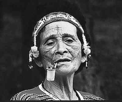 泰雅文化工作者田貴實(shí)先生告訴我們,對(duì)男子而言,文面是成年的標(biāo)志,也是勇武的象征;對(duì)于女子,則是善于織布的標(biāo)記。同時(shí),文面還有辟邪、美觀和祖靈識(shí)別的作用,經(jīng)過(guò)完整文面的泰雅男女生時(shí)受到族人的認(rèn)可、敬重,死后則可順利通過(guò)“彩虹橋”,到達(dá)祖靈承諾的安息之鄉(xiāng)。但文面的風(fēng)俗在日據(jù)時(shí)代被禁止,如今尚存的文面老人已不多(見(jiàn)圖)。