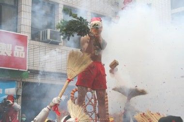 其中的重頭戲炮炸寒單爺,今年一共安排了十四場次的定點(diǎn)表演。第一次看表演的民眾覺得是既恐布又過癮。