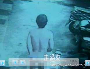 據(jù)臺(tái)灣東森新聞報(bào)道,監(jiān)視錄像帶中左上角這名男子全身光溜溜,從小吃店跑到大街上,左手遮著重要部位,右手往后遮屁股,見(jiàn)到有放學(xué)的學(xué)生經(jīng)過(guò)還會(huì)害羞的跑到車子后方躲起來(lái),光天化日之下在大街上上演裸奔戲碼,他不是和朋友玩游戲玩輸被懲罰,而是因?yàn)闆](méi)錢付酒錢。