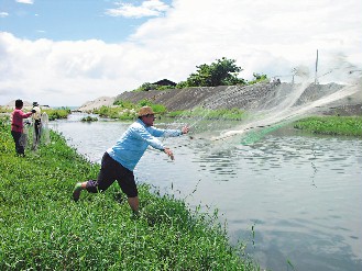 中新網(wǎng)6月16日電 臺灣花蓮市阿美族12個部落原住民昨天聯(lián)合舉辦捕魚節(jié)暨海祭活動,除傳統(tǒng)祭儀外,各部落派員在七腳川溪出海口進行撒網(wǎng)捕魚比賽,并享受鮮魚美味大餐,得到撒網(wǎng)賽冠軍的吉寶干部落,還破例開放女性參加陸上撒網(wǎng)趣味活動,體驗先人捕魚文化。