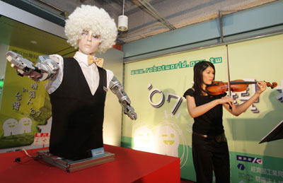 其中,有智慧機器狗透過掌聲次數(shù)的聲控技術,可以做出奔跑、休息等擬真的動作。還有樂團演奏家看著機器人的指揮,彈拉出一首首美妙的音樂。