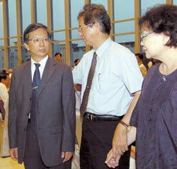 弟弟李遠鵬當選院士(左)。晚宴時,李遠哲夫婦(中)一同祝賀他。(王英豪攝)