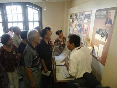 大陸游客參觀一樓回廊、臺灣建筑之美展覽、歷任臺灣地區(qū)領導人文獻檔案,參觀時間約50分鐘。大陸游客也蓋下紀念章,并在大樓前拍照留念。