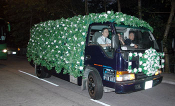 位于貨運園區(qū)旁的簡易靈堂以竹林為視覺擺設(shè),中堂擺設(shè)上近兩千盆白色蘭花,象征陳啟禮生前與“竹聯(lián)幫”的深厚淵源,而靈堂內(nèi)也有數(shù)百人出入穿梭。