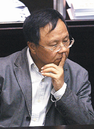 臺灣當局“教育部長”杜正勝在“立法院”備詢時,忍不住打哈欠,還摳鼻孔。記者邱勝旺/攝影