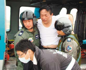 落海后大家漂開(kāi)了,海面黑漆漆,風(fēng)浪像山一般鋪天蓋地的襲過(guò)來(lái),朱福儀與機(jī)工林芳和、劉顯英、大廚元立德、三副黃李仙、水手長(zhǎng)郭松斌、實(shí)習(xí)水手馮峰、李興龍等八人相距不遠(yuǎn),海浪大,又黑又冷,昏暗中八人盡量靠在一起,互相打氣、取暖。幸好天亮后直升機(jī)前來(lái)救援,將他們八人全部救起。