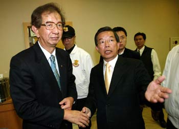 “中央研究院”榮譽(yù)院長(zhǎng)李遠(yuǎn)哲(左)21日表態(tài)支持民進(jìn)黨候選人謝長(zhǎng)廷,希望謝長(zhǎng)廷能記取八年來陳水扁做得不盡完善的地方,落實(shí)人民期許和批評(píng)。