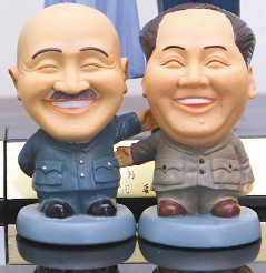 據(jù)臺灣《聯(lián)合報》報道,國民黨黨史館主任邵銘煌也證實,為迎接大陸觀光客,黨史館與廠商制作一系列歷史人物公仔,除蔣介石、宋美齡夫婦的Q版公仔,還有蔣介石與毛澤東“歡笑言和版”,六十年前的硝煙炮火都在一笑中化解。