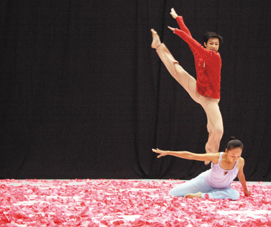 農(nóng)歷大年初五一場(chǎng)大火,燒掉云門(mén)舞集的家,浴火后云門(mén)再度出發(fā),昨天在數(shù)萬(wàn)片花瓣圍繞下舞新作“花語(yǔ)”。藝術(shù)總監(jiān)林懷民說(shuō),人生有不同風(fēng)景,不見(jiàn)得都是美麗的,“花語(yǔ)”不只有漂亮的花瓣,還有不斷擾人的風(fēng)扇聲,吹動(dòng)著花瓣隨處飄飛,這風(fēng)是人生的風(fēng),不知不覺(jué)吹白了頭。(臺(tái)灣《聯(lián)合報(bào)》圖)