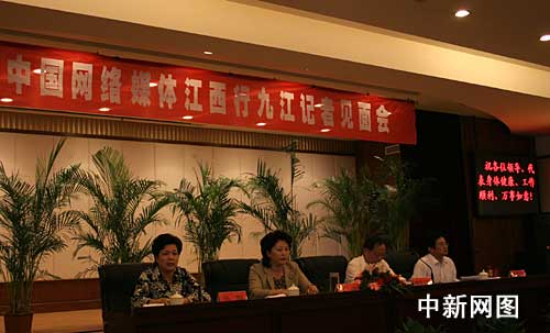 中新網(wǎng)10月20日電 參加“第五屆中國網(wǎng)絡(luò)媒體江西行”的采訪團成員20日抵達九江市,圖為記者見面會現(xiàn)場。九江是江西的“北大門”,是國家第一批五個沿江開放城市之一。九江歷史文化悠久、區(qū)位交通優(yōu)越、自然資源豐富。