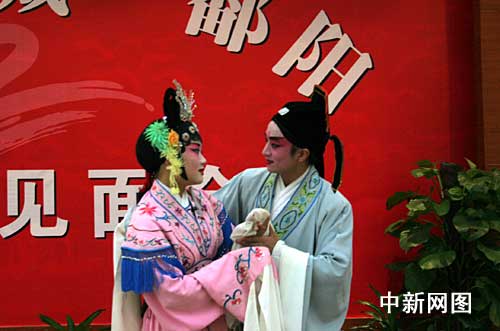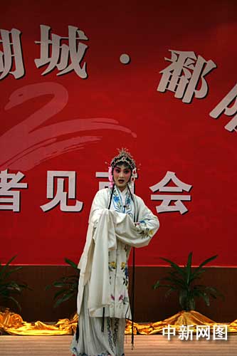 中新網(wǎng)10月22日電 “第五屆網(wǎng)絡(luò)媒體江西行”采訪團22日抵達鄱陽縣。縣委書記劉鋒等會見了記者并回答提問。見面會后,當(dāng)?shù)匮輪T獻上了地方戲劇。