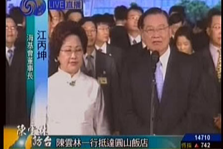江丙坤也特別向陳會(huì)長(zhǎng)提出來,這里有很多熱情的好客的臺(tái)灣的民眾,他們的心聲,相信他會(huì)聽得到。他并再度地表示歡迎,也希望這一次的協(xié)商順利成功。