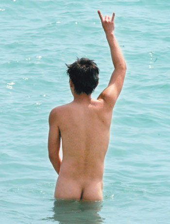 電影《海角七號(hào)》臺(tái)灣票房大破1億元(新臺(tái)幣,下同),范逸臣兌現(xiàn)裸泳承諾,在墾丁全裸入海,更全身涂滿助曬油增加肌膚黑亮質(zhì)感,泡在海里時(shí)還不忘興奮大喊:“我終于用我自己獨(dú)特的方式,為《海角七號(hào)》的驚人票房慶功啦!”