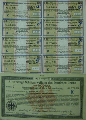 臺北市的蘇文朗,當年祖父是士林紙廠的干部,他五歲時,曾看過祖父拿出兩張鈔票大小的“彩色紙片”用來包煙草。當時他好奇地纏著祖父問,這些“圖畫紙”是哪里來的。祖父抽了一口煙,緩緩地說:“這不是圖畫紙,是外國錢!痹瓉碜娓府斈攴蠲择R克債券作為紙廠員工工資,但心軟的祖父預感這些“外國錢”兌換無門,因此家境富裕的他,干脆自掏腰包發(fā)薪水,而這些馬克債券就成了祖父嘴邊的彩色煙卷。