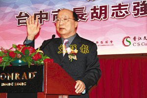 中新網(wǎng)12月19日電 臺中市長胡志強18日在香港香江文化交流基金會午餐會發(fā)表演講,提出加強臺中、香港、廈門的經(jīng)濟文化交流,建設(shè)南峽(臺灣海峽南部)金三角經(jīng)濟區(qū)。