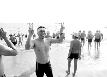 轉(zhuǎn)眼間,時(shí)間過(guò)去了半個(gè)多小時(shí),主辦方規(guī)定的結(jié)束時(shí)間到了,還有不少人舍不得上岸,只好讓救生艇出動(dòng)去清場(chǎng)。岸上的觀眾則熱情地等待著最后一名游泳者上岸,并報(bào)以熱烈的掌聲。(記者 葉秀月/文 吳曉平/圖)