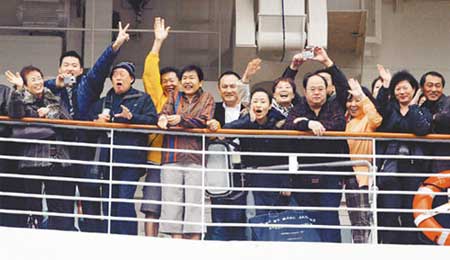 12日下午,近700名大陸游客搭乘“海洋迎風號”國際游輪駛離高雄,結束了為期兩天的臺灣觀光之旅。由于游客人數(shù)眾多,它也被稱為史上最大規(guī)模的大陸觀光團。與臺灣當局如臨大敵、處處設限不同,島內媒體和商界均異常興奮,稱這是“春天來臺的第一只燕子”,呼吁當局盡快取消對大陸游客的限制。陳水扁11日趕緊邀功稱,這個大陸團是他在春節(jié)前特案批準的,意圖給民進黨在“大選”中加分。