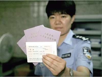 昨天上午10時,北京市公安局出入境管理處民警展示《大陸居民往來臺灣通行證》。據出入境管理處負責人介紹,當天下午,所有參加首發(fā)團的北京旅行社都將領到證件。 本報記者盧國強 通訊員趙宏宇 攝影報道