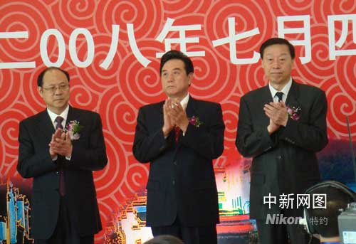 圖為海協(xié)會(huì)會(huì)長陳云林(中)、國臺辦常務(wù)副主任鄭立中(左)、江蘇省長羅志軍出席儀式。