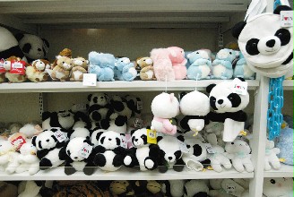 大陸贈(zèng)臺(tái)熊貓團(tuán)團(tuán)、圓圓23赴臺(tái),臺(tái)北市立動(dòng)物園的紀(jì)念品早就有“團(tuán)團(tuán)、圓圓”的蹤影,各式樣熊貓的紀(jì)念品被放在明顯的位置,等候民眾購(gòu)買(mǎi)。圖片來(lái)源:臺(tái)灣《聯(lián)合晚報(bào)》