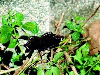 二個多月前,石進宏在伊達邵一帶找到4個疑似蝴蝶的蛹,沒想到人工孵化后,居然是伊達邵已相當(dāng)少見的“琉球紫斑蝶”,孵出3公、1母,最近再繁衍下一代,目前合計已在園內(nèi)有20只。