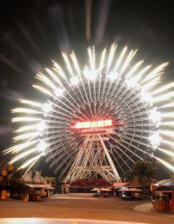 在摩天輪上施放煙火,將摩天輪設(shè)計(jì)成巨大燦爛的煙火球,創(chuàng)造出的視覺效果令人驚艷贊嘆。云林縣一處大型游樂場(chǎng)為迎接2009年新年,跨年夜當(dāng)晚將推出煙火秀,15日晚上先行試放時(shí),美麗景象就讓現(xiàn)場(chǎng)民眾忍不住發(fā)出陣陣驚呼。