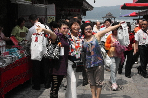 大陸旅游團(tuán)所搭乘郵輪在臺(tái)中港上岸后,轉(zhuǎn)搭四十部游覽車分兩路前往日月潭及中臺(tái)禪寺旅游。上、下午兩批團(tuán)員歷經(jīng)約三十分鐘的游湖賞景后,團(tuán)員在日月潭商圈停留購物時(shí)間也拉長到一小時(shí)以上。