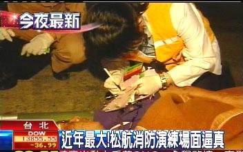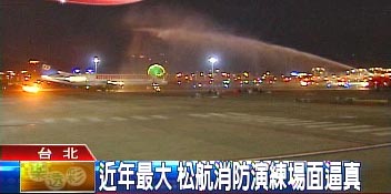 據(jù)臺灣TVBS報道,熊熊大火愈燒愈旺,松山機場火燒機,連行李都來不及拿,旅客倉皇逃命拔腿狂奔,連身穿像極了太空裝的消防隊員都出動,氣氛有夠緊張;不過,這其實只是松山機場難得的演習,但場面真的很盛大。