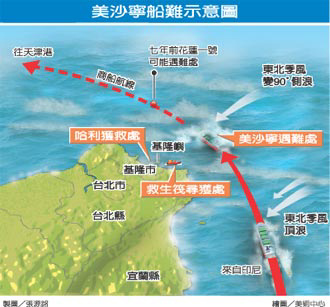 再者,兩艘船都是東北季風(fēng)增強(qiáng)之際,四十五度角頂風(fēng)從臺(tái)灣東岸北上,經(jīng)三貂角后,船頭由正北轉(zhuǎn)向西北,東北季風(fēng)變成垂直從右側(cè)襲擊,風(fēng)浪也是側(cè)浪沖撞拍打。此時(shí),如果隔艙沒做好,艙內(nèi)鐵砂或砂石會(huì)不斷左移造成傾斜;傾斜過大遇大浪,船舶就會(huì)瞬間側(cè)翻,并迅速沉沒。