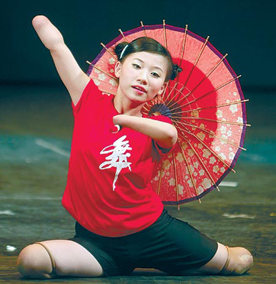 韋齊小時候就學(xué)跳舞、學(xué)彈琴,直到她因病被迫截肢,這兩件事變成“夢想”,但昨晚她還是實現(xiàn)了這個夢想。她用截肢后的雙腿踩著滑板出場,引得全場熱烈掌聲;再隨著《虹彩妹妹》的節(jié)奏擺動身軀、轉(zhuǎn)動紙傘。她就像沒有翅膀的天使,在舞臺上慢慢飄舞。