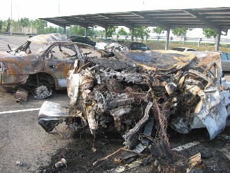 火勢順利撲滅后,發(fā)現(xiàn)兩部車上的駕駛及乘客均被燒成焦黑,已無生命跡象。由于辨識困難,目前仍未確認(rèn)死者身份,警方將進(jìn)行較精確的比對工作。目前正深入調(diào)查車禍詳細(xì)原因及死者身份。
