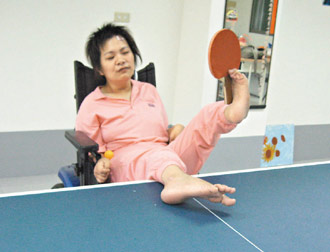 中新網(wǎng)12月25日電 臺(tái)灣女子黃美秀盡管罹患腦性麻痹,卻頑強(qiáng)地克服障礙,靠著靈活的“黃金左腳”學(xué)電腦、打乒乓球。她的名言是:“勇敢走出去,不要把自己當(dāng)成不敢見(jiàn)人的魔鬼。”