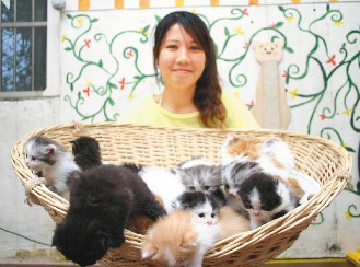 中新網(wǎng)5月21日電 臺灣一位29歲的女研究生徐慈馡念大一時(shí)養(yǎng)第一只貓,從此愛貓成癡,如今養(yǎng)了三十只,為照顧“貓咪軍團(tuán)”,她省吃儉用,貓住套房、吃高級餐,她穿百元平價(jià)衣、吃路邊攤,卻無限滿足。