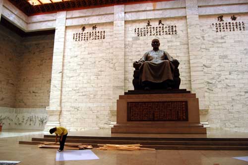 一大早中正紀(jì)念堂的大門一打開,觀光客們迫不及待進(jìn)入大廳和蔣介石銅像合影留念。不少人都認(rèn)為,把特展上花花綠綠的風(fēng)箏、五顏六色的圖片廣告牌移除,恢復(fù)到像以往的模樣,看起來莊嚴(yán)多了,也比較順眼,只可惜臺軍儀隊(duì)和憲兵沒有同時(shí)恢復(fù)表演和站崗,感覺上似乎少了點(diǎn)什么。