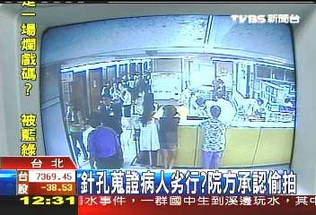 據(jù)臺(tái)灣TVBS電視臺(tái)報(bào)道,這個(gè)醫(yī)院堅(jiān)稱(chēng)是消防灑水系統(tǒng)的噴口竟然是監(jiān)視錄像機(jī),臺(tái)北市議員接獲投訴,醫(yī)院裝針孔偷拍病人,火氣很大。臺(tái)北市議員莊瑞雄說(shuō),“你們到底要看什么?因?yàn)槟且婚g不是保護(hù)病房呀,除了保護(hù)病房,是不能裝這個(gè)(監(jiān)視器)的呀,醫(yī)學(xué)院應(yīng)該都有念到呀!
