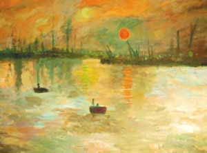 中新網(wǎng)7月9日電 莫內(nèi)名畫(huà)“印象‧日出”,也有“日落”、“夜幕”版嗎?據(jù)臺(tái)灣《聯(lián)合報(bào)》報(bào)道,臺(tái)大機(jī)械工程系教授黃秉鈞利用調(diào)控投射在名畫(huà)上的彩色LED光源,制造出名畫(huà)不同風(fēng)貌,發(fā)展出嶄新的“LED歐普藝術(shù)”。