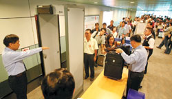 無論通關(guān)后或登機前,都有安檢人員特別“伺候”,把每一個旅客的行李都打開檢查。男性安檢人員有時還要檢查女性的衣物,引來一陣尷尬。