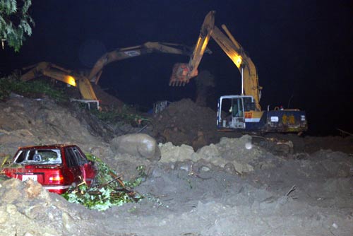 事發(fā)后,現(xiàn)場共動員二百名相關(guān)單位人員及五部重機(jī)械搶救,至當(dāng)晚九時搜出四輛汽車(包括一輛廂型車、兩輛小客車、一輛小貨車)及一部摩托車。