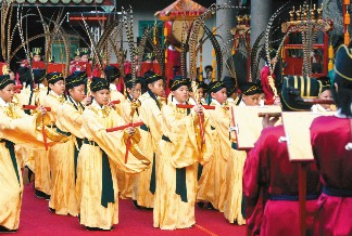 中新網(wǎng)9月28日電 臺北市孔廟過去都是用六佾舞祭孔,今年因孔廟整修完畢,加上馬英九將以貴賓身份出席孔廟祭典,特別擴大規(guī)模以天子之禮的八佾舞呈獻上天,對孔子表達最崇高的敬意。