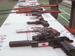 臺(tái)警方查獲透過(guò)網(wǎng)絡(luò)營(yíng)銷具殺傷力的改造手槍,是目前黑幫分子的最愛。(圖:臺(tái)灣《中國(guó)時(shí)報(bào)》)
