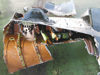 空軍編號一六一五IDF雙座戰(zhàn)機(jī),前天上午飛到澎湖草嶼石礁靶場炸射時(shí)失聯(lián),兩名飛行員失蹤。軍方昨天撈獲疑似IDF左、右襟副翼及零組件、高壓氣瓶、機(jī)炮自動(dòng)馬達(dá)及發(fā)動(dòng)機(jī)下方掛點(diǎn)等殘骸,不是斷裂就是嚴(yán)重扭曲,未見爆炸痕跡,軍方分析“戰(zhàn)機(jī)撞擊海面造成”。