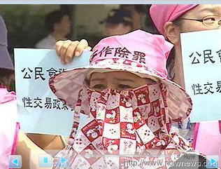 中新網(wǎng)10月30日電 臺北市廢公娼已經(jīng)有7年,但支持公娼工作權(quán)的“日日春協(xié)會”,多年來都訴求要開放娼妓合法化。日日春協(xié)會會員30日來到“行政院”舉牌抗議,強(qiáng)調(diào)既然全世界都無法完全禁止嫖妓行為,當(dāng)局何不開放合法,讓性工作者有條生路可走。