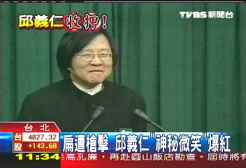3·19槍擊案發(fā)生的第一時間,邱義仁更出面微笑召開記者會,說子彈就在陳水扁身上,這也成了他最著名的“秘書長微笑”。(圖片來源:臺灣TVBS)