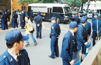 警察不敢掉以輕心,一字排開并分持盾牌、警棍將臺北地院四周團團圍起,進行管制,還有便衣刑警錄像搜證。特勤維安人員除穿插在警方陣勢中,法庭內(nèi)外更是到處可見。