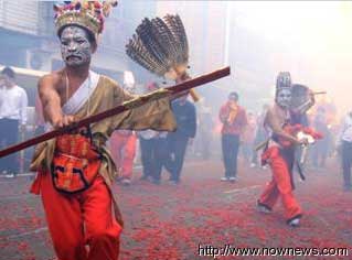 臺南鹽水蜂炮于元宵節(jié)凌晨舉行,蜂炮、煙火四竄的炮炸洗禮,每每讓參與的民眾驚叫連連,而日間的陣頭表演,包含扯鈴、宋江陣、舞龍、跳鼓、八家將等也非常精采。